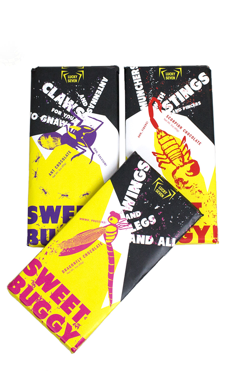 Randomly drawn demographic: adrenaline junkies For the adventure-loving, novelty-seeking adrenaline junkies, I decided to promote the healthy and nutritious habit of entomophagy. For Product & Packaging Class at Cornish College of the Arts